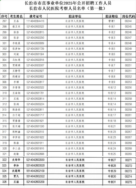 附:1、長治市人民醫(yī)院考察人員名單(第一批)